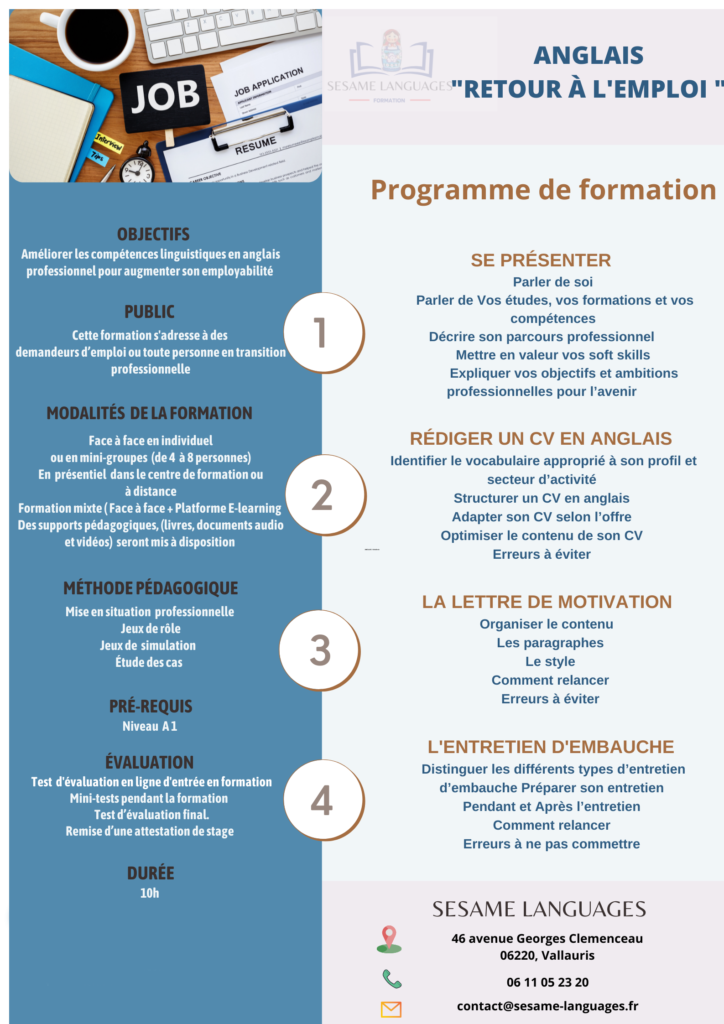 RETOUR À L'EMPLOI CPF INTER INTRA CPF Nos parcours CPFCours Individuel: 80 €/hCours Collectif: 25€/h INTER En groupe Durée: sur demande Tarif: 25€/h par stagiare INTRA En groupe/ Individuel Durée: sur demande Tarif: sur demande